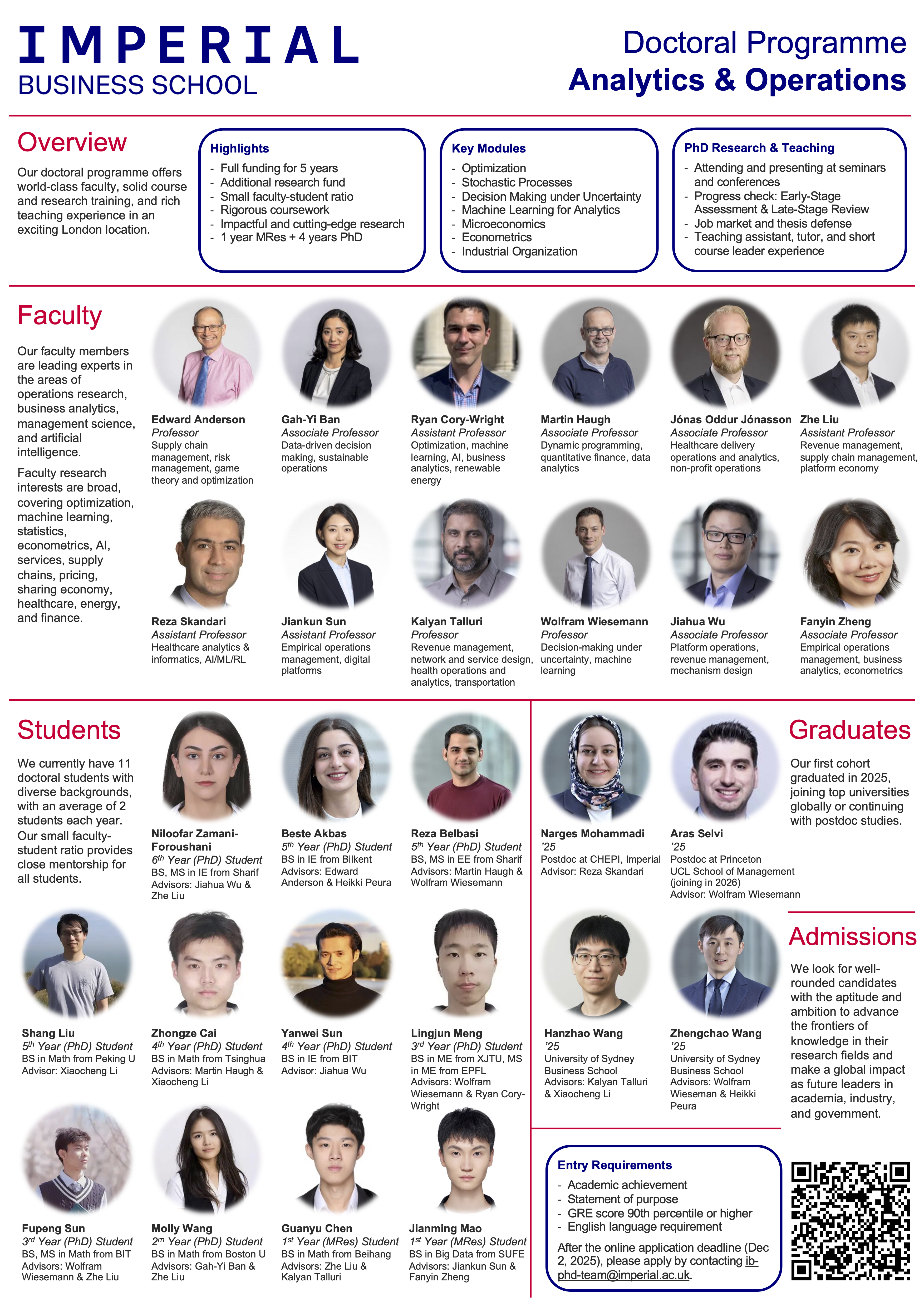 The Analytics and Operations (A&O) area at Imperial Business School, Imperial College London, is recruiting PhD applicants for the next academic year. Our students work on exciting topics such as mechanism design, revenue management, data-driven optimization, and AI.