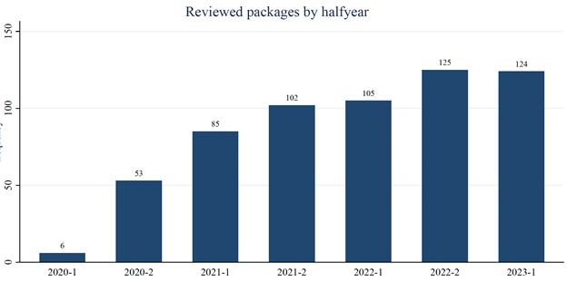 The number of reviewed replication packages has been steadily increasing, with about 250 packages just in the past 10 months. For context, in 2022 Management Science had 4200 submissions, and accepted 430 papers.
