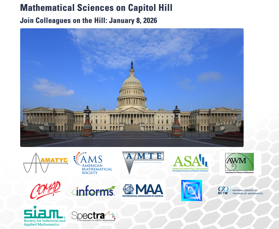 Congressional offices want to understand the real impact of the mathematical sciences - including Operations Research, Analytics, Data Science, and all of our community's related fields. Your perspective helps shape how policymakers think about research funding, STEM education, innovation, and the nation's scientific capacity.