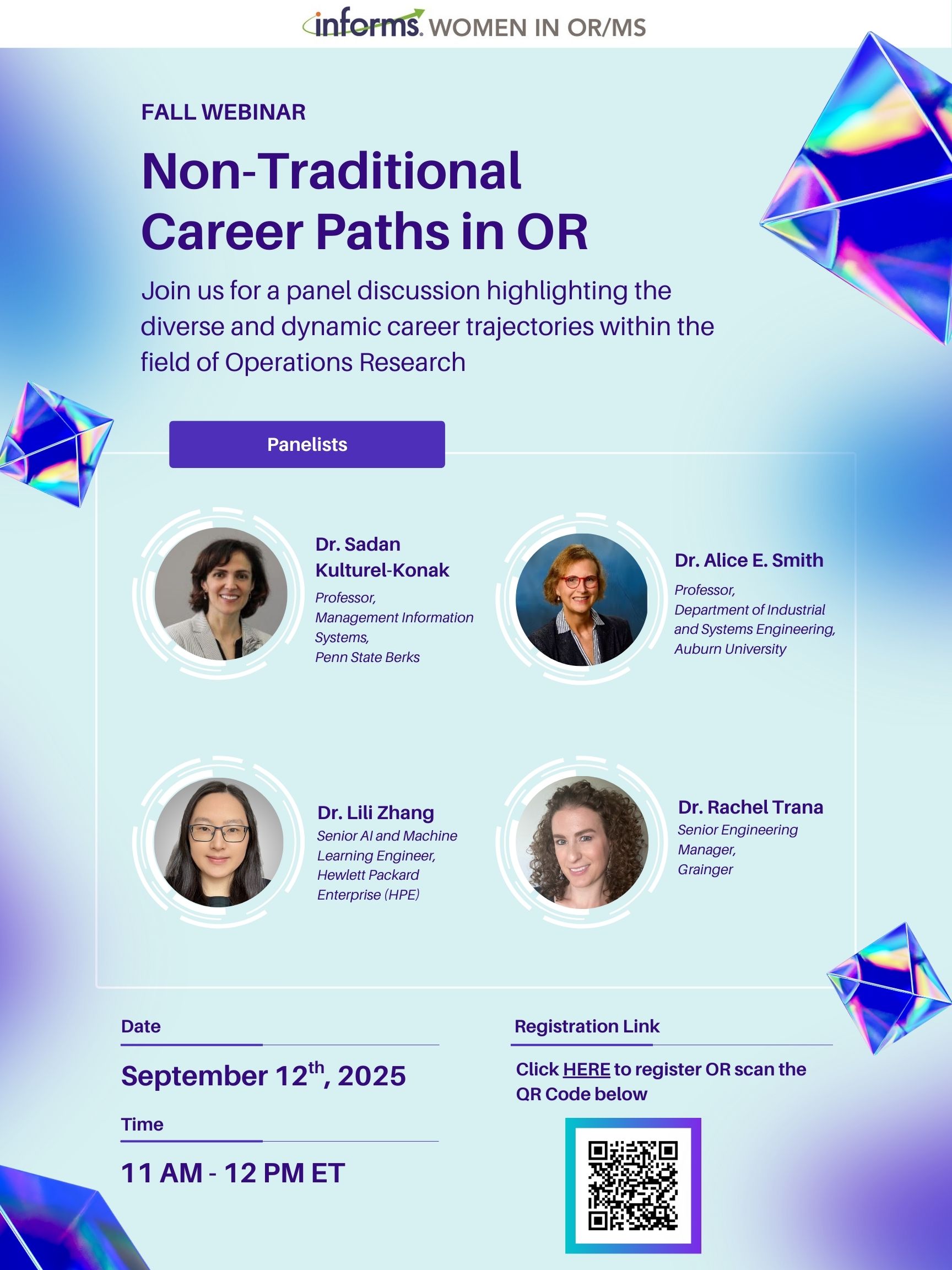 Join us for a panel discussion, organized by WORMS, highlighting the diverse and dynamic career trajectories within the field of Operations Research. Our panelists have pursued paths that deviate from the traditional routes - transitioning between industry and academia, stepping into administrative leadership, crossing disciplinary boundaries, or shifting between teaching-focused and research-intensive roles. Through candid conversations, we’ll explore the motivations behind these transitions, the challenges encountered, and the opportunities unlocked along the way. This session is especially valuable for students and professionals considering alternative career directions in OR.